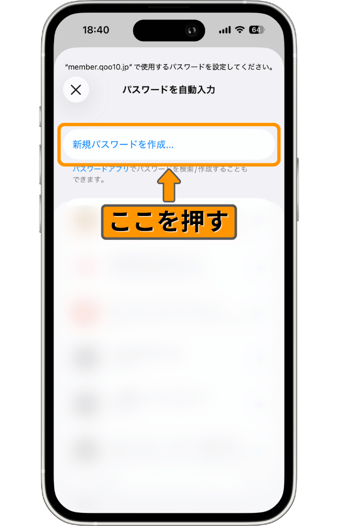 ↓「パスワード」を押すと、「新規パスワードを作成…」という項目が出てくるので、ここを押します。