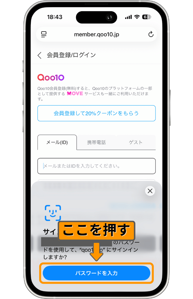 ※既にQoo10会員のため、登録されているメアドやパスワード(ログインに必要な情報)を「Passwords」アプリに登録していくといった流れです。