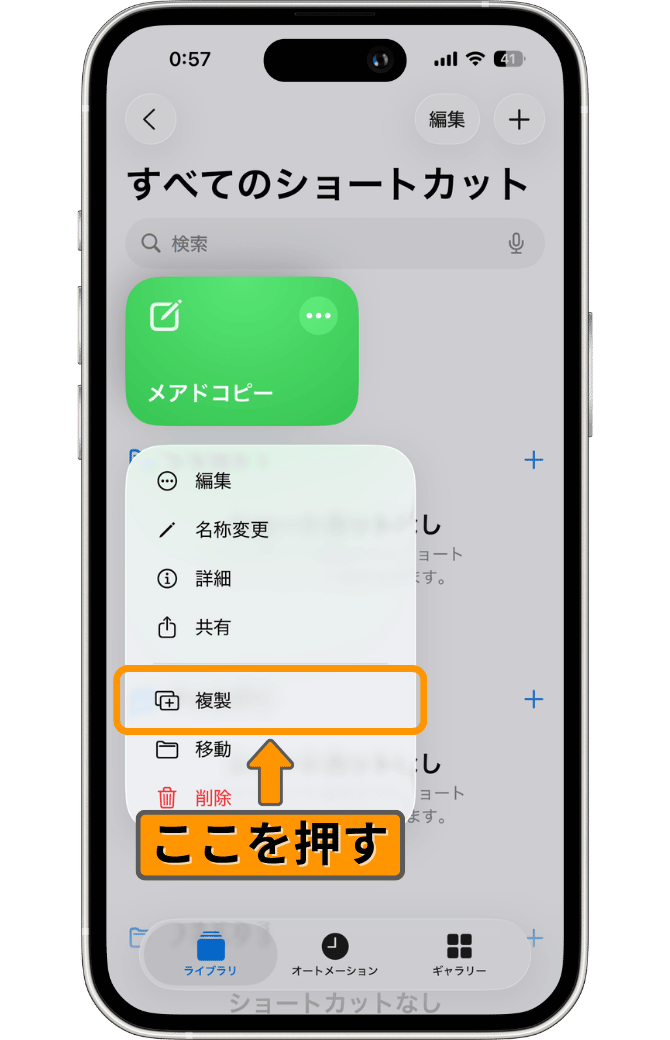 次は、追加したショートカットを複製する方法を解説します。