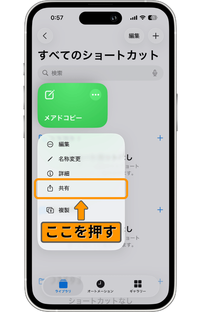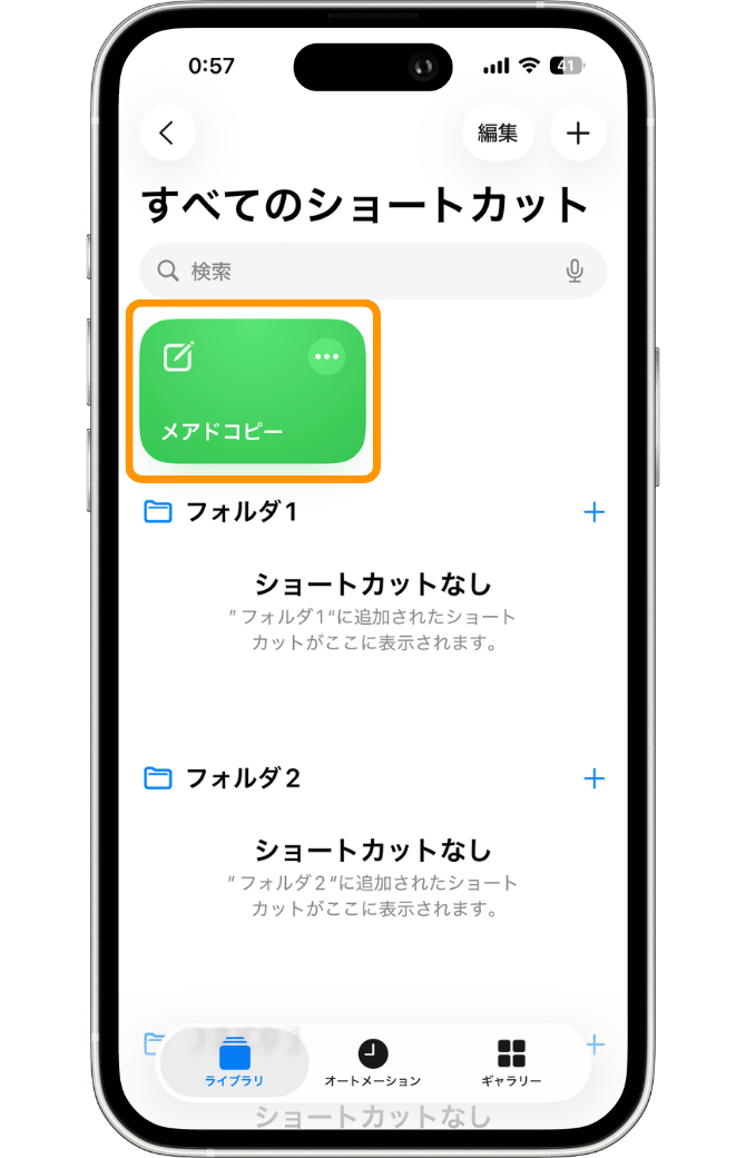 まずは、ショートカットの編集画面を開いていきます。