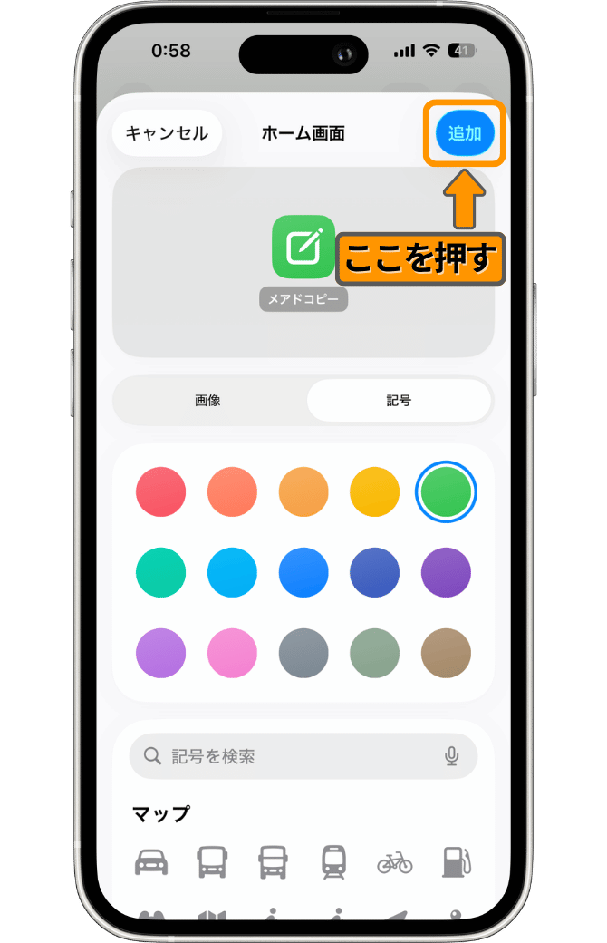 「ホーム画面に追加」を押します。