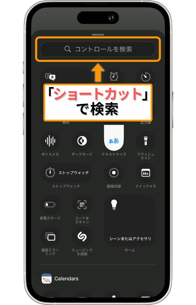 では次に、追加したショートカットを「コントロールセンター」に配置していきます。