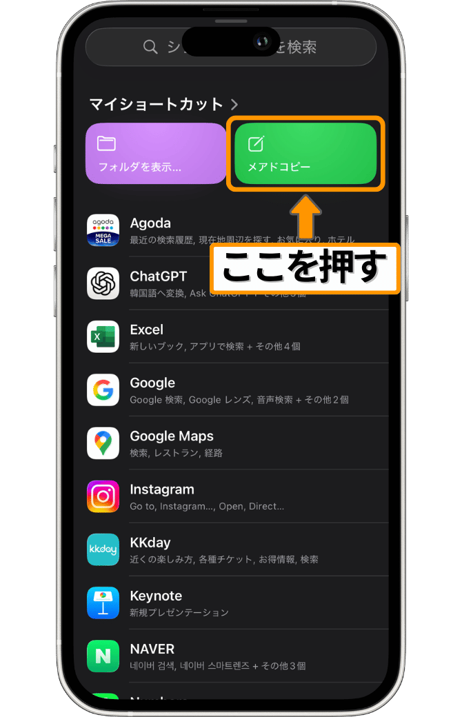 では最後に、ショートカットを実行する手順を解説していきます。非常に簡単です。