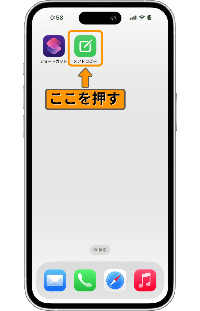 ↑「メアドコピー1」を長押し!